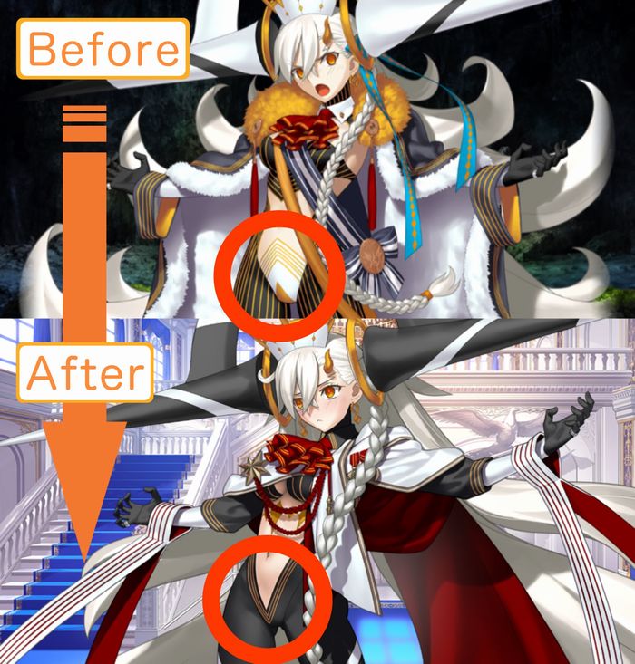 なんか違和感感じると思ったらそれか…よく見たら角のカラーリング逆になってたりするし髪の毛の感じも変わってるしなんでなんやろ