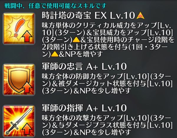 【FGO】スキルの”NPを増やす”って表記の横に[Lv1~]って書いてたら強化すればNP獲得量が増えるけど、書いてない場合は強化しても数値は変わらんから気を付けるんじゃぞ
