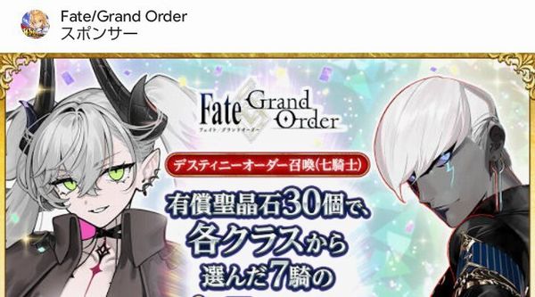 デスティニーオーダー召喚の広告がリリスとインドラの悪魔と神の組み合わせでちょっと面白い。 #FGO #FGO10周年 pic.twitter.com/Rt6CQ9W8rK