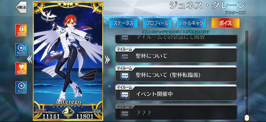 【FGO】ジュネス・クレーンは聖杯あげたら追加されるマイルームボイスまであるの凄いな