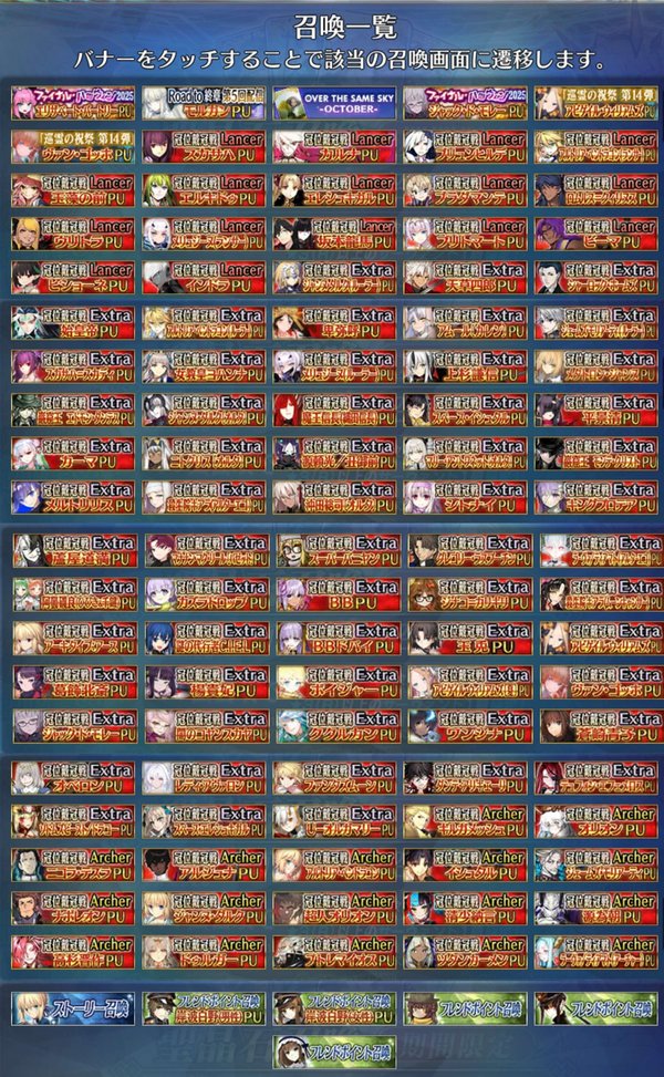 【FGO】現在開催中のピックアップガチャ一覧が圧巻すぎてヤバいよね