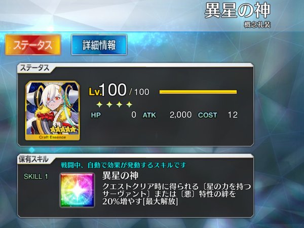 4枚目:ATK特化のNP「60」礼装。アペ2&NPスキル30が面倒だったり、NP20しかチャージできない鯖に pic.twitter.com/1vKdrNe7bA