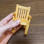 これ、拡散してくれると嬉しいんですけど、新潟県の新井の道の駅で見つけたミニチュア家具の椅子。家具職人さん手作りの品。細かいしかわいい。