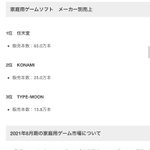 そもそも2位のKONAMIは9割カード目的で買われてるからTYPE-MOON実質2位でしょ
