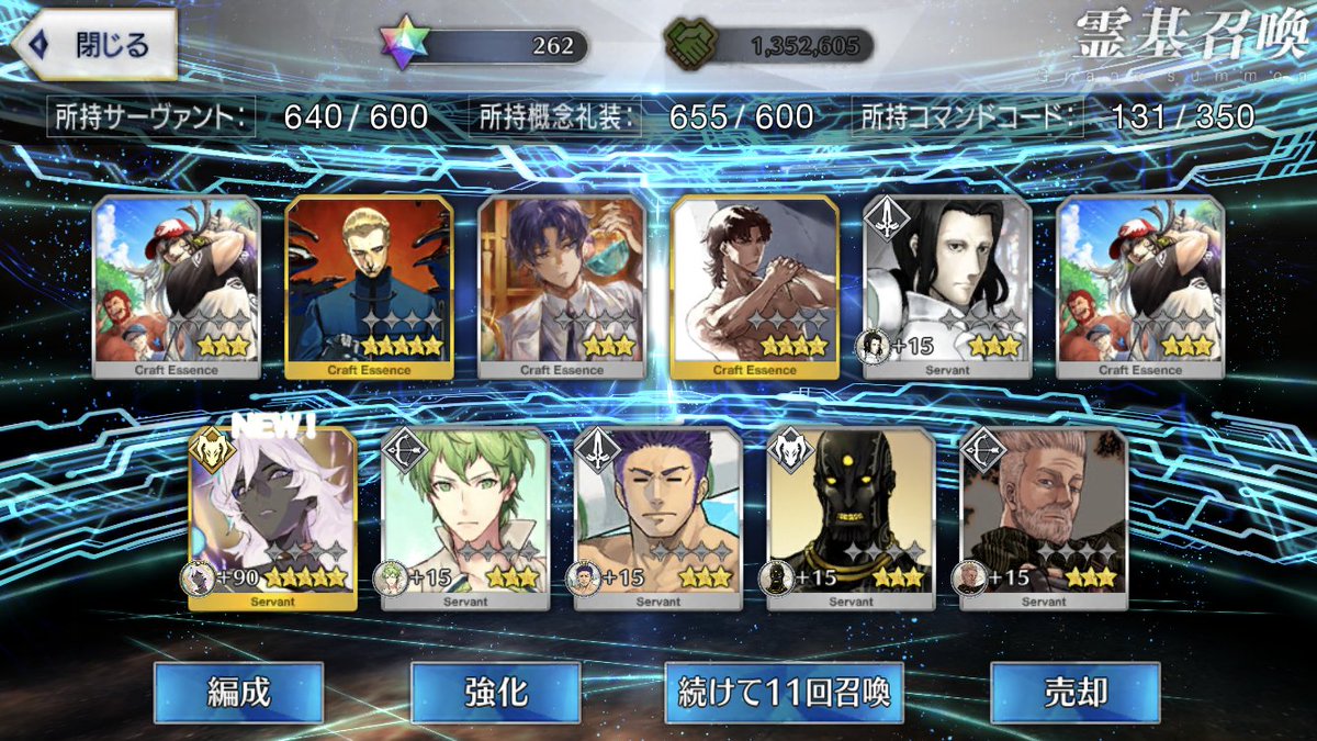 神は1騎引けたけど、2騎目を追ったらはじめちゃんが通算宝具10超えた上に、マーリンとオベロンの礼装が凸ってしまった…(2騎目来なかった)