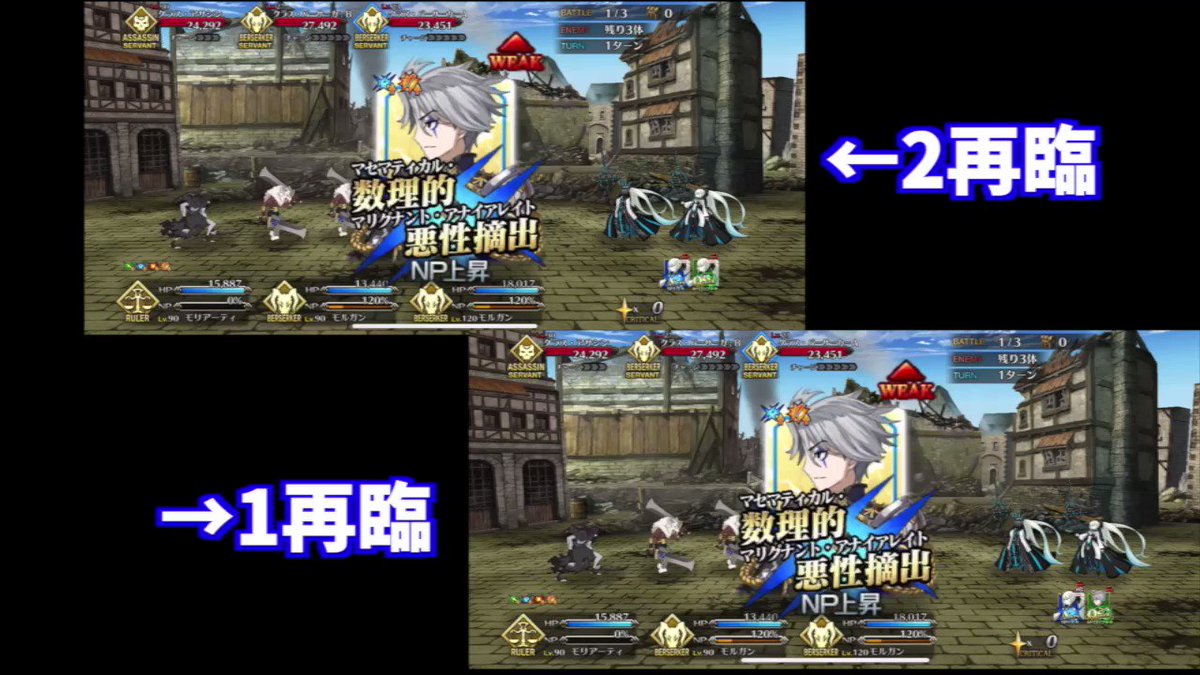 モリアーティ、1再臨と2,3再臨でかなり速度に差があるわね(ガチャバナーでは見れない再臨が宝具時に出るから気をつけてね)