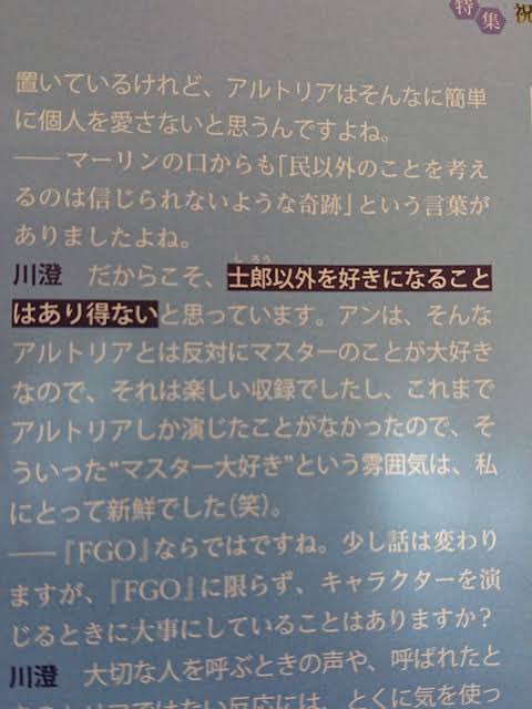 アルトリアと言うか、SN後の青王を指した話だよね。